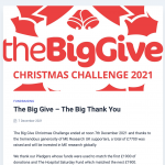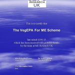 ‘ME Research UK wishes to thank all members of the VEGEPA Club whose contributions helped us obtain Charity Champion funding and match funding which raised over £7700 in donations during The Big Give Christmas Challenge 2021.