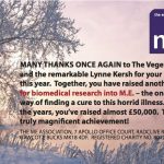 Your pledge helped secure much needed  additional funds which will be invested in M.E. research globally.”
