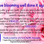 £2,600.35 is the amount we have donated so far just to the ME Biobank Research Fund – all down to you wonderful Members!