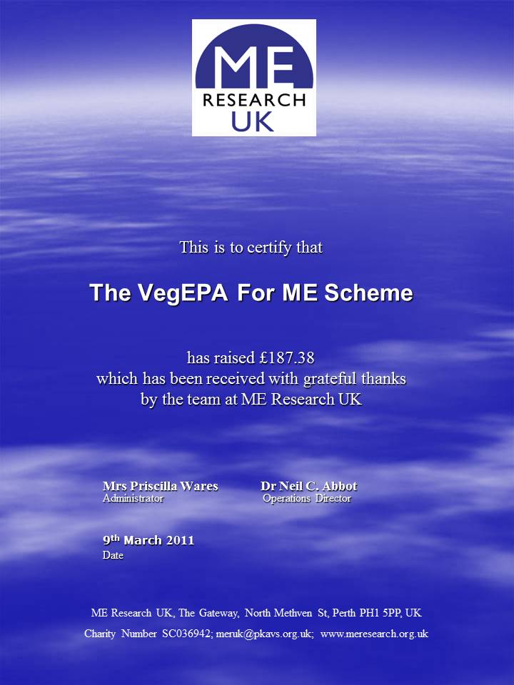 1103-Vegepa-Certificate Published 8th November 2023 at 720 × 960 in Our donations to ME Research – so far almost £80k!