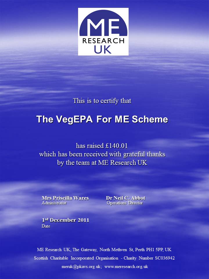 1111-Vegepa-Certificate Published 8th November 2023 at 720 × 960 in Our donations to ME Research – so far almost £80k!